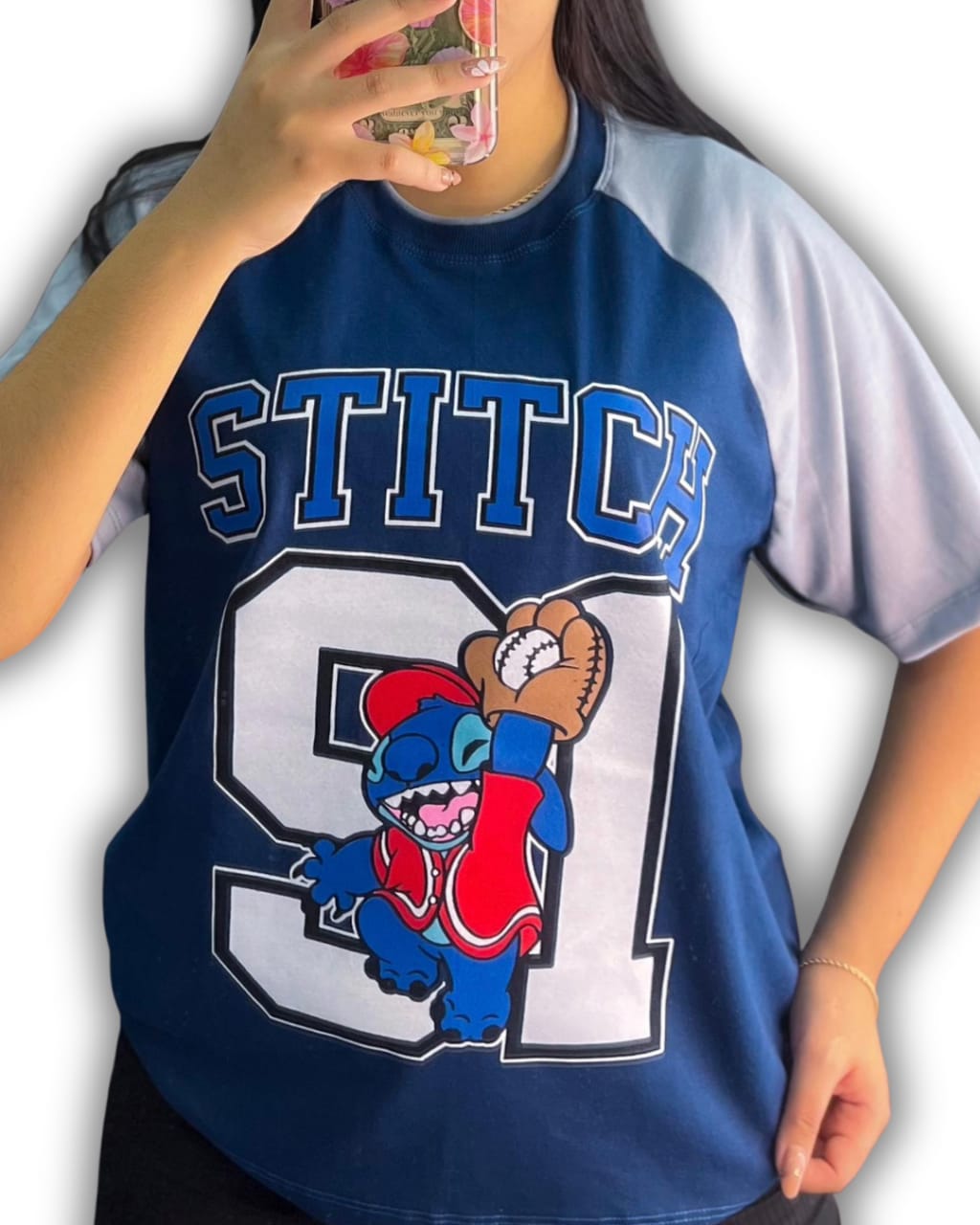 Franela Oversize Beisbolera de Stich Azul con Gris